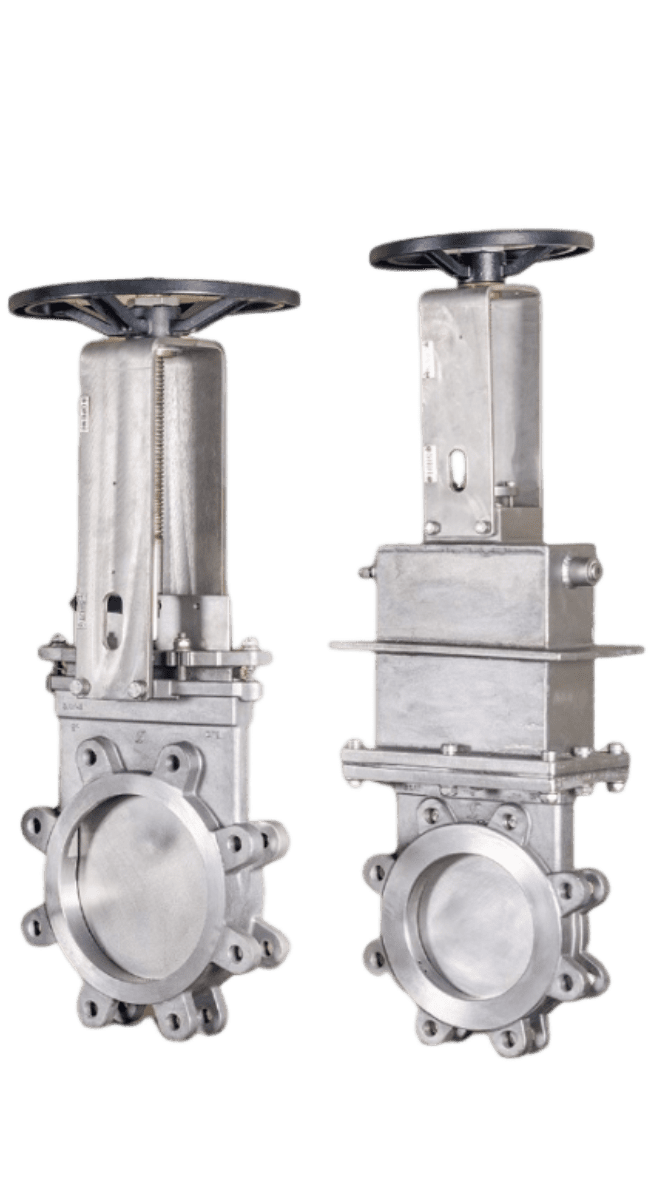 Knife Gate Valves are bonnetless, full lug design valves, manufactured in compliance with the MSS SP-81 standard for industrial service applications. These valves are primarily used in industries such as power generation, cement production, paper and pulp, chemicals, water treatment and other process industries for handling solids, liquids, and liquid-solid mixtures. They are available with either metal or soft seats or bidirectional seating depending on the application and can be installed in vertical, horizontal or inclined positions.